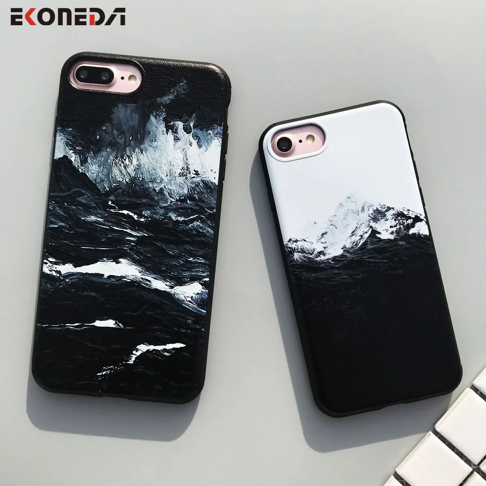 incredible EKONEDA Black TPU Case For iPhone 6 6S Plus Case Silicone Sea Wave Himalaya Mountain Cover For iPho